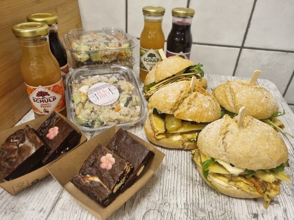 – per persoon: 1x rustico bonk, 1x rond hartig taartje (ongesneden), 1x zoete afsluiter, 1x flesje sap –
